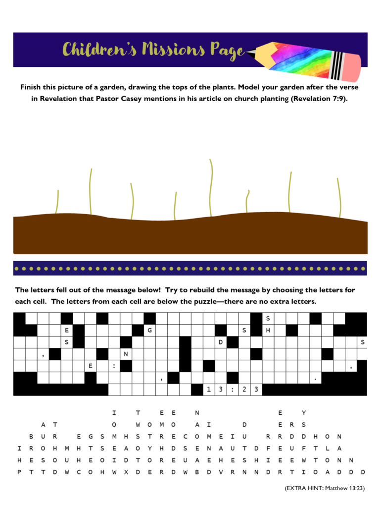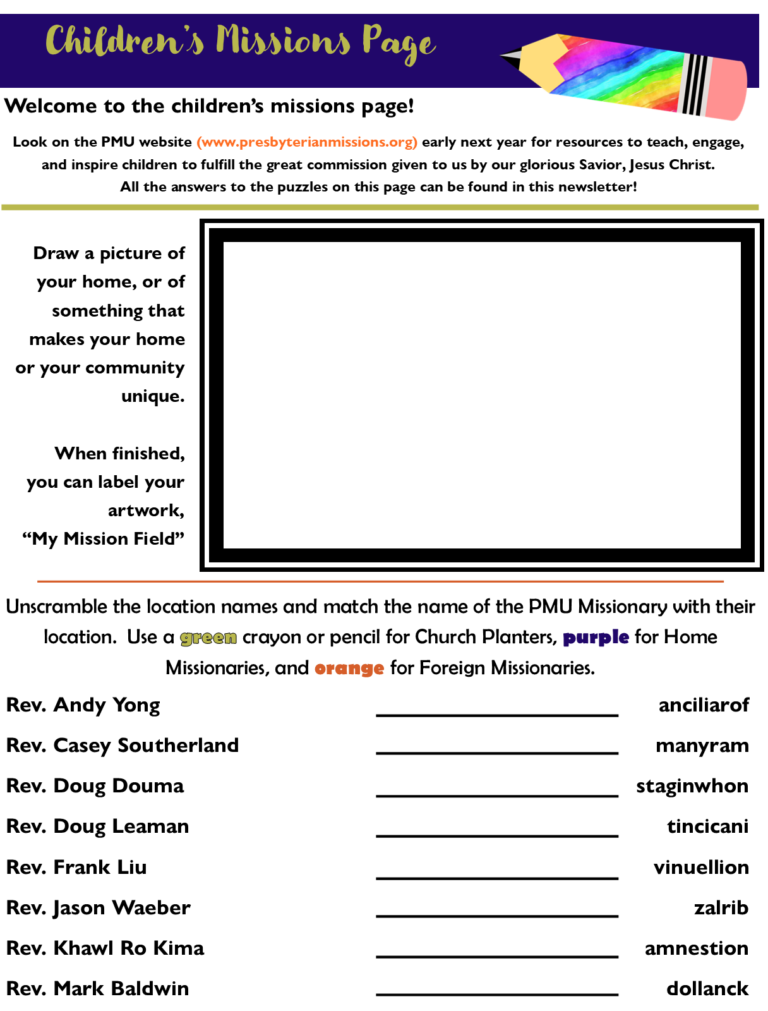 Children’s Missions Page from the November/December 2020 edition of the Missions Banner