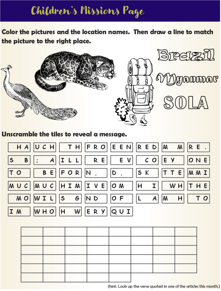 Children’s Missions Pages (March 2021 Banner, Online edition)